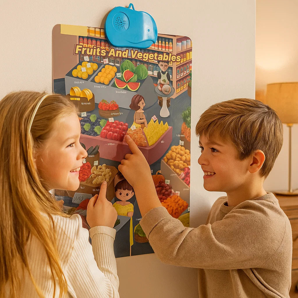 - 🔊 Interaktiivinen Touch-to-Sound Learning: Vain napauttamalla aktivoit äänet ja puhutut sanat, mikä auttaa lapsia yhdistämään luonnollisesti kuvat ja ääntämisen.